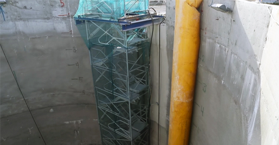 مقطع يستعرض أعمال إنشاء شبكات تصريف مياه الأمطار، وخزان مياه الأمطار على عمق 25 متر تحت سطح الأرض، وتتصل به أنابيب طولها أكثر من 80 كلم